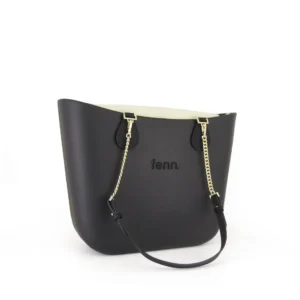 ORIGINAL COLLECTION – BLACK – beige inner – gold zip – black / gold chain handle