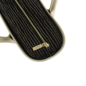 - Equipped with a silver zip closure for added security and style.