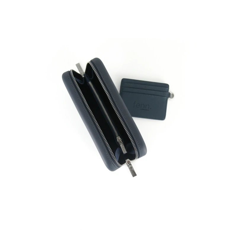 The Original Fenn Wallet is durable, practical and stylish as per all our Fenn products. The exterior of the wallet is made from Vinyl with a wrap around zipper. The interior is lined with canvas and has space for 8 cards. The added bonus to the wallet is that it comes with an additional removable card holder that holds up to 6 additional cards! There are a couple more pockets for notes and slips along with a zipper coin pouch. The second added bonus is that the wallet can hold your cellphone (iPhone 12/13 Max Pro or other equivalent sized phones)